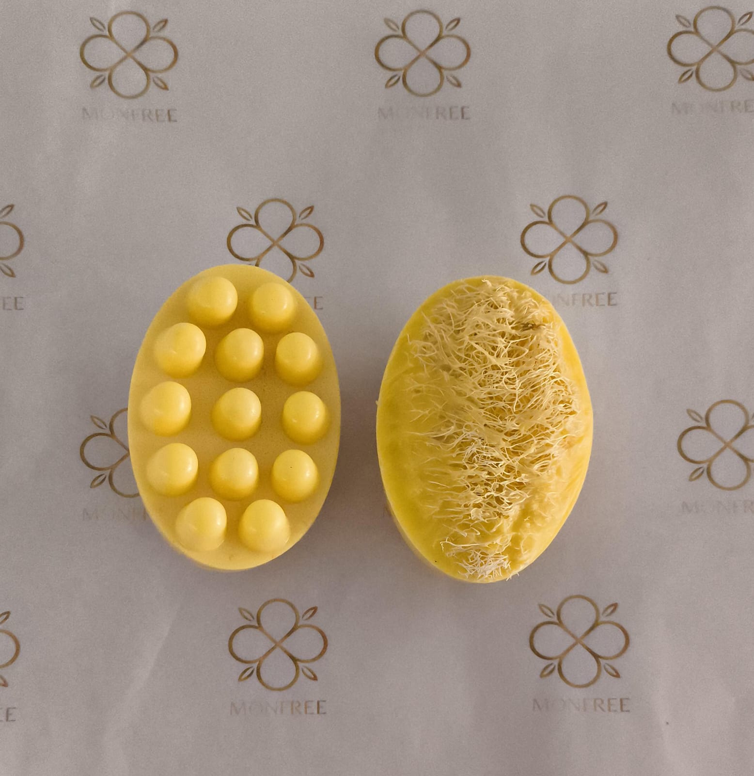 A Bucha Sabonete Massageador Monfree combina limpeza, esfoliação suave e massagem em um único produto.